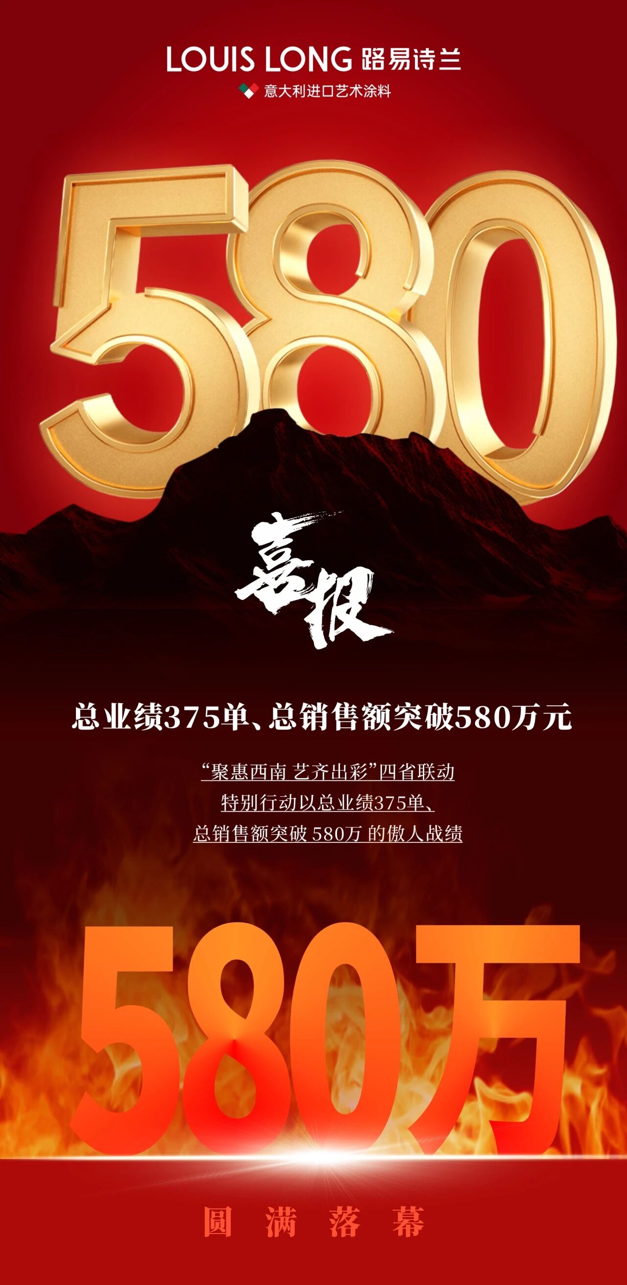 375单总销售额突破580万元!当云贵川渝战场的捷报如惊雷般炸响,当四省联动的数字狂欢席卷艺术涂料市场,路易诗兰用一场酣畅淋漓的胜利,