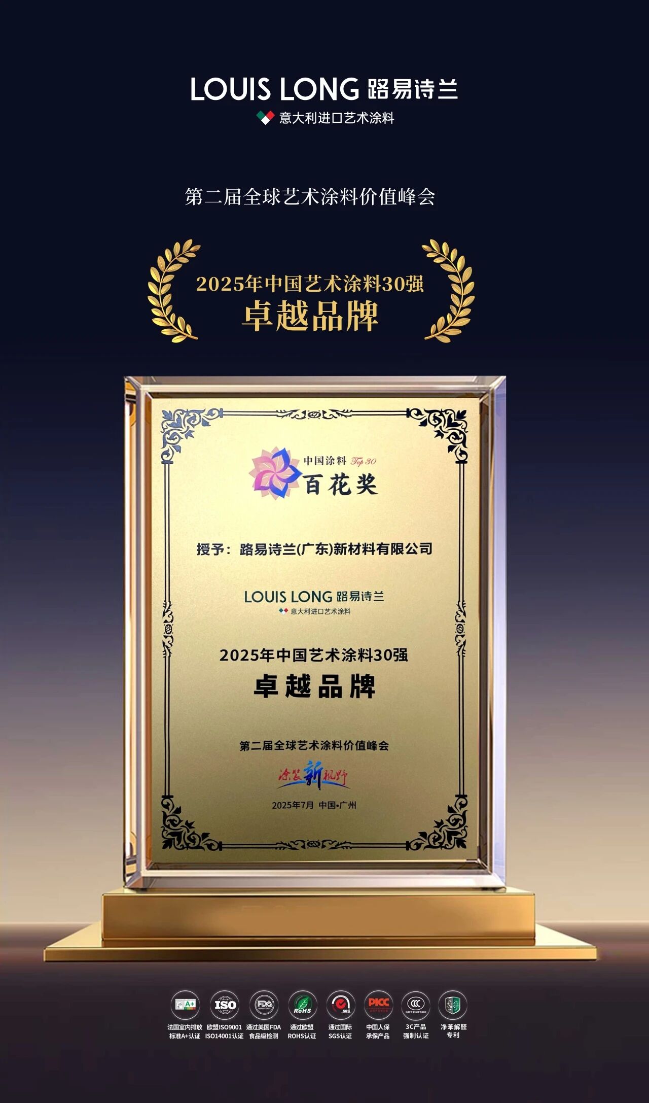 而是路易诗兰在艺术涂料领域深耕细作、坚守品质的重要见证,标志着品牌在标准化建设与纯正血统传承上迈出了坚实一步。