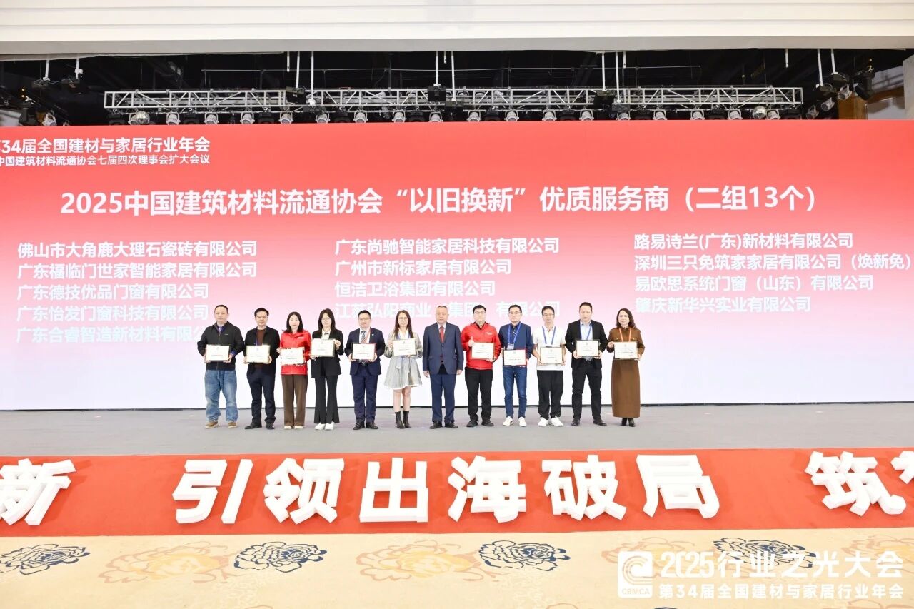 一举斩获“2025年建材与家居行业以旧换新‘优质服务商’”与“城市更新‘繁荣之光’正能量案例”两项殊荣。